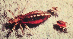 sangre y viven en nuestra cabeza, por eso se les llama parásitos. Tienen seis patas que terminan en pequeñas garras
