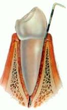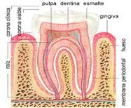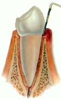 incersión de la placa dental y el hueso de soporte que mantiene los dientes