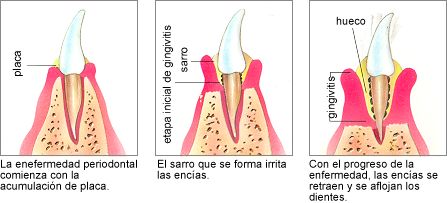 (como la gingivitis), hasta llegar a la pérdida de los dientes.