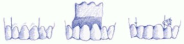 mordida, por ejemplo, uniendo los dientes con férulas temporales para reducir