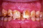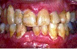 Periodontitis Moderada.- Los dientes se ven más largos debido a la retracción, pueden