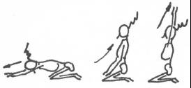 1.- De rodillas sobre talones, deslizar los brazos por los muslos y el suelo, sin elevar los glúteos