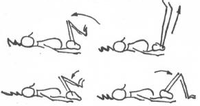 4.- Abdominales. Decúbito supino, rodillas flexionadas, llevarlas al pecho en espiración