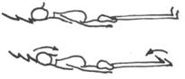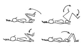 9.- Oblicuos. Decúbito supino con brazos en cruz, flexionar ambas rodillas y llevarlas a ambos lados