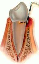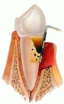 incersión de la placa dental y el hueso de soporte que mantiene los dientes